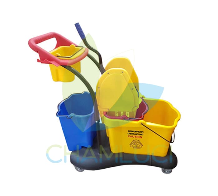 Carro escurridor con divisiones para agua sucia y limpia asi como tambien para otros implementos.