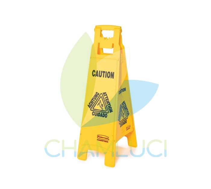 el letrero de piso mojado rubbermaid cuenta con rotulado en sus 4 caras en multilenguaje (inglés, francés y español) para mayor rango de comunicación a un rango mas grande de personas.